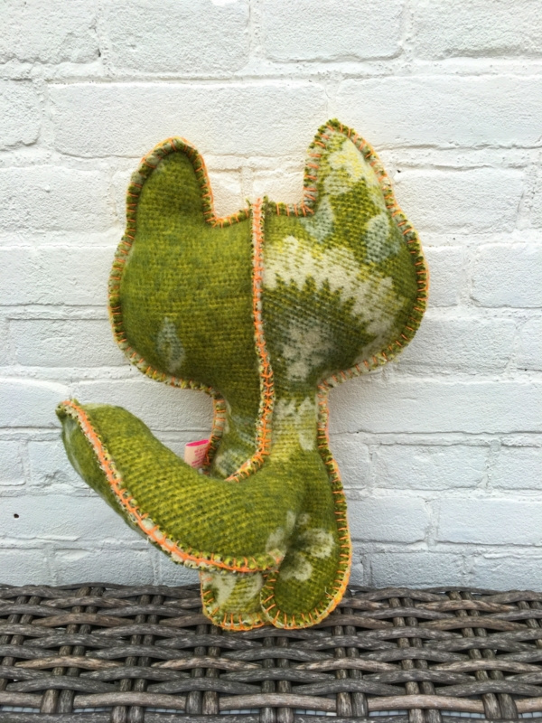 De producent: De hartverwarmende katten worden gemaakt door de vrouwen die bij 'Kunst om de hoek' van Heliomare te Haarlem werkzaam zijn. Van ontwerp door mij, naar zorgvuldige uitwerking door de dames. Het hele proces begeleiden is een fantastisch avontuur gebleken. Samen kozen we kleuren voor iedere kat, wat de katten uniek maakt. Geen kat is hetzelfde. Net zo uniek als ieder van ons is. Ik heb 21 katten gemaakt, ze zijn genummerd en uniek. Nog maar een paar beschikbaar!